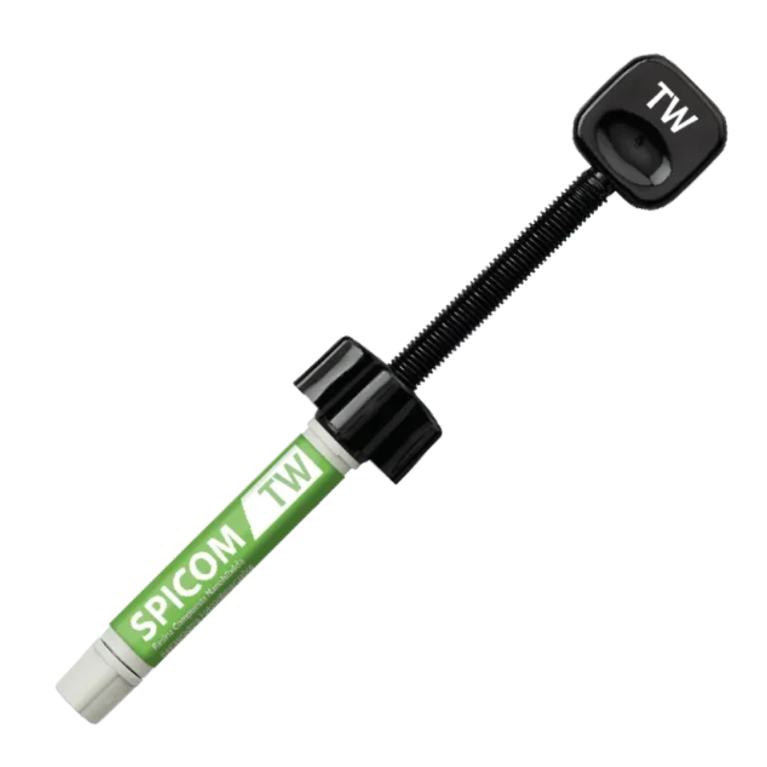 🎨 La Spicom destaca por su “efecto camaleón”, es decir, su capacidad de integrarse visualmente con el color de los dientes naturales del paciente, mejorando la estética de la restauración.